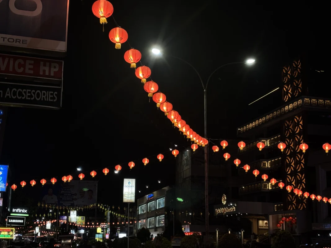 Lampion Imlek tetap berdiri sebagai simbol perayaan masyarakat Tionghoa. Lampu ketupat tetap menyala sebagai penanda Ramadhan bagi umat Muslim. Keduanya tidak disembunyikan, tidak dipisahkan, dan tidak dipertukarkan waktunya. Kota ini memilih menghadirkan keduanya secara bersamaan.